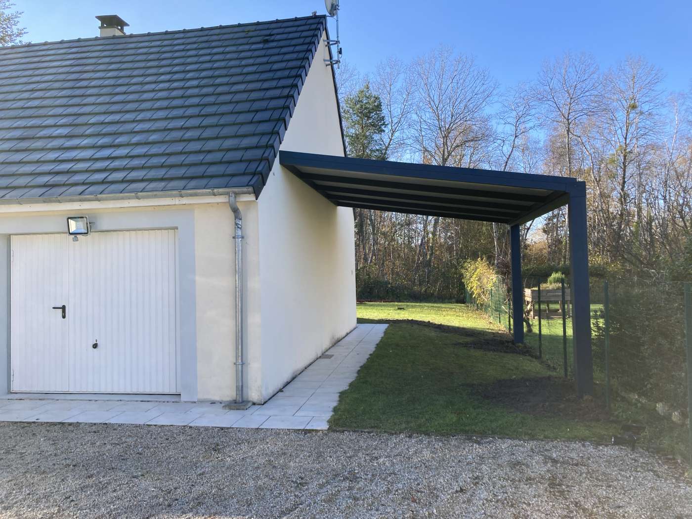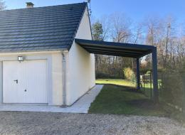 Carport mono-pente implanté sur le pignon d'une maison, posé à Cour-Cheverny à côté de Blois