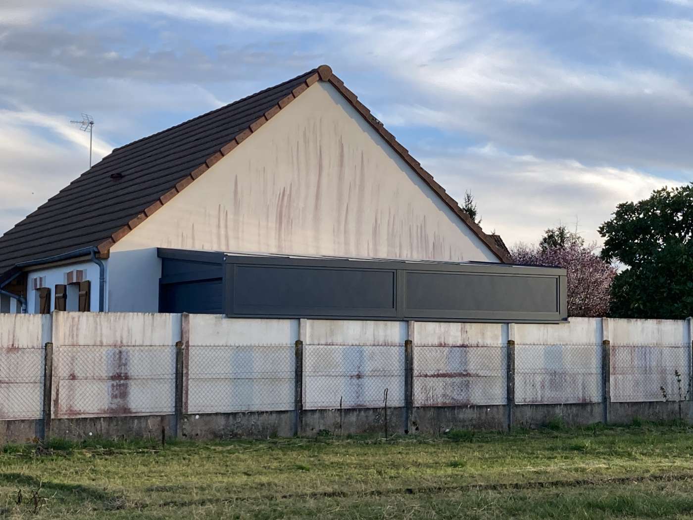 Le côté a été fermé par des panneaux isolants raccordés au dessus des plaques de béton en limite de propriété.