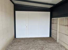 Carport entièrement fermé avec porte de garage sectionnelle et porte de sortie arrière