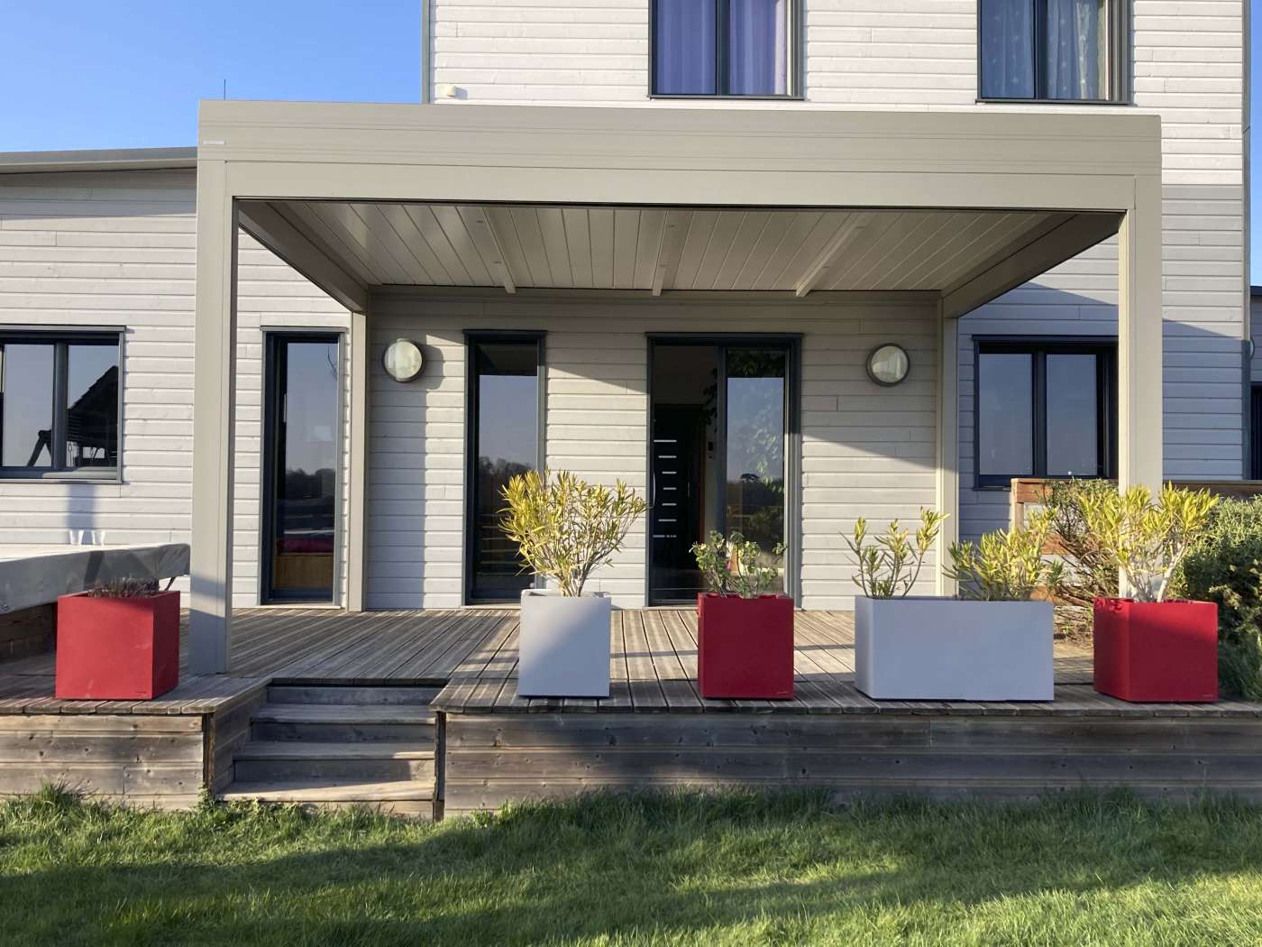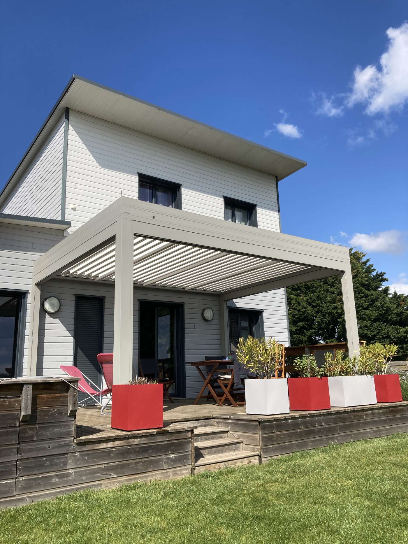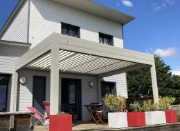 Pergola bioclimatique autoportante pour maison ossature bois