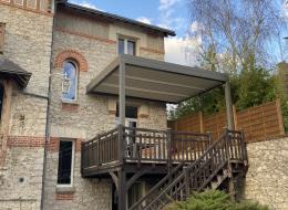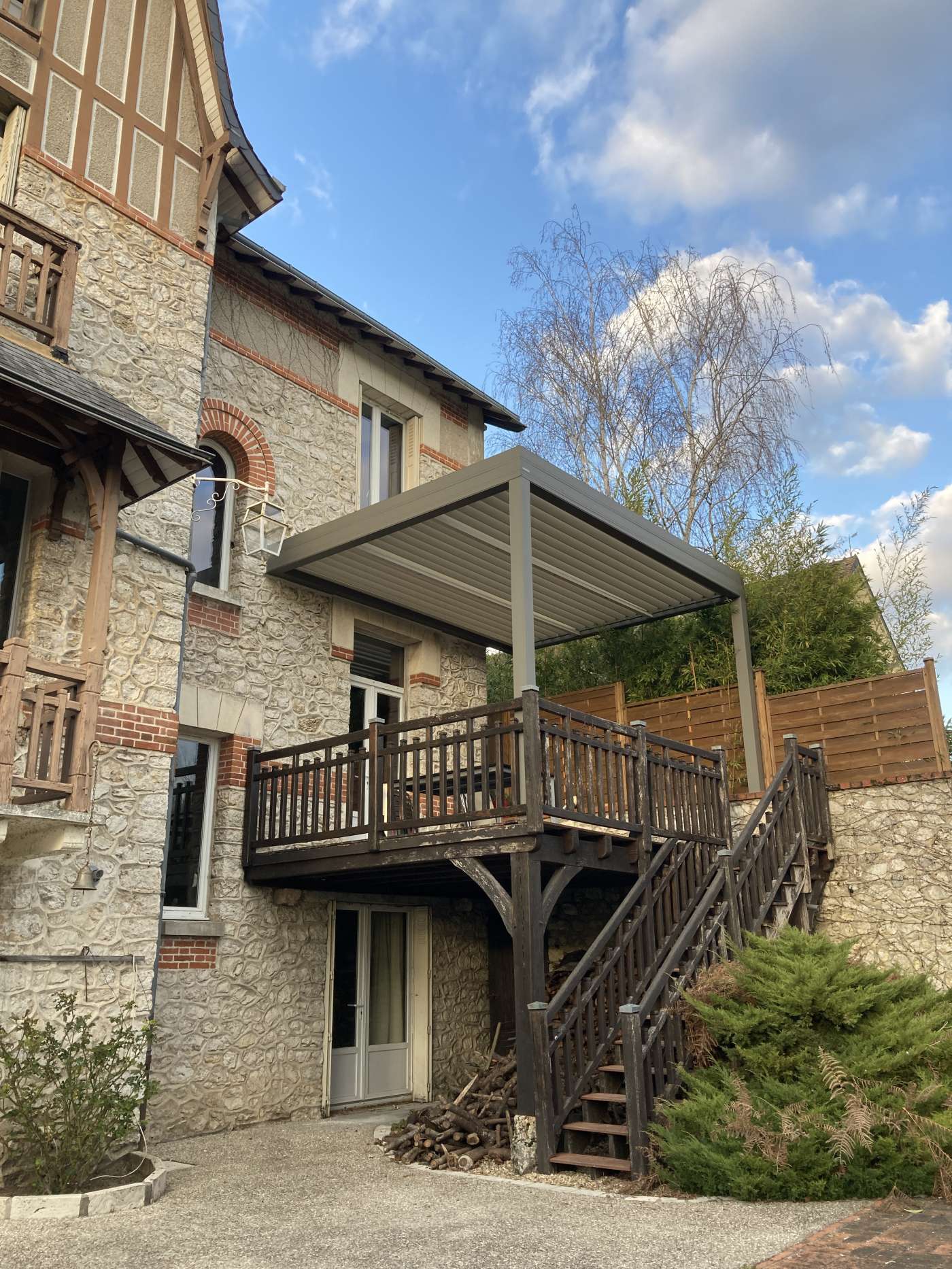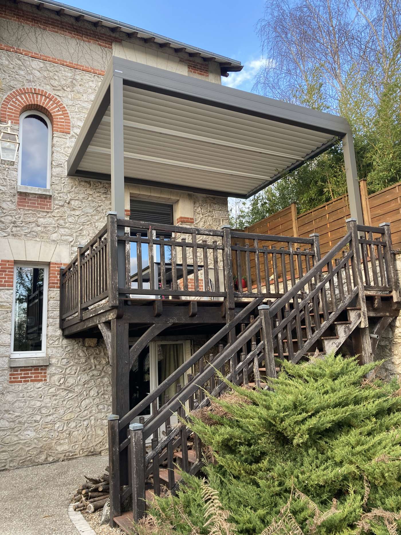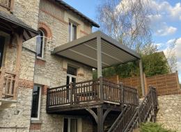 Pergola Bioclimatique sur balcon en bois, posée à Vineuil, près de Blois