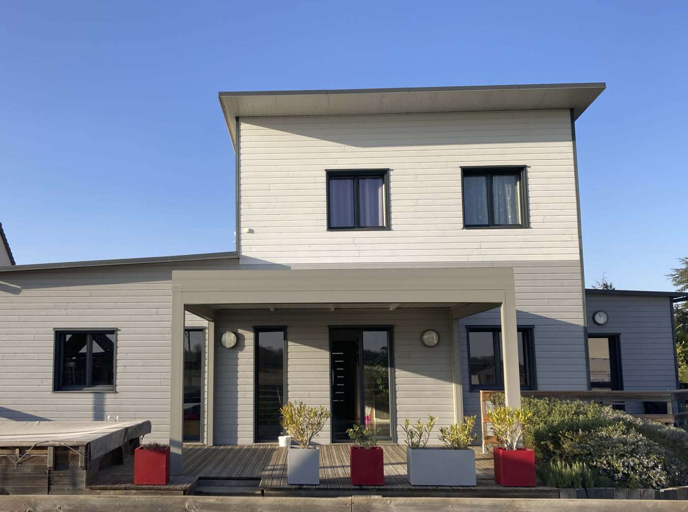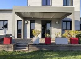Pergola bioclimatique autoportante pour maison ossature bois