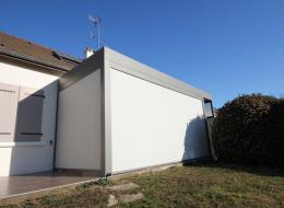 Pergola bioclimatique avec stores verticaux, posée en limite de propriété à Romorantin