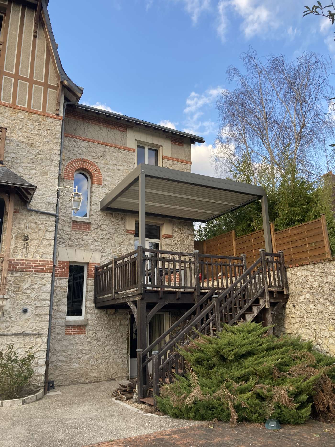 Pergola Bioclimatique sur balcon en bois, posée à Vineuil, près de Blois