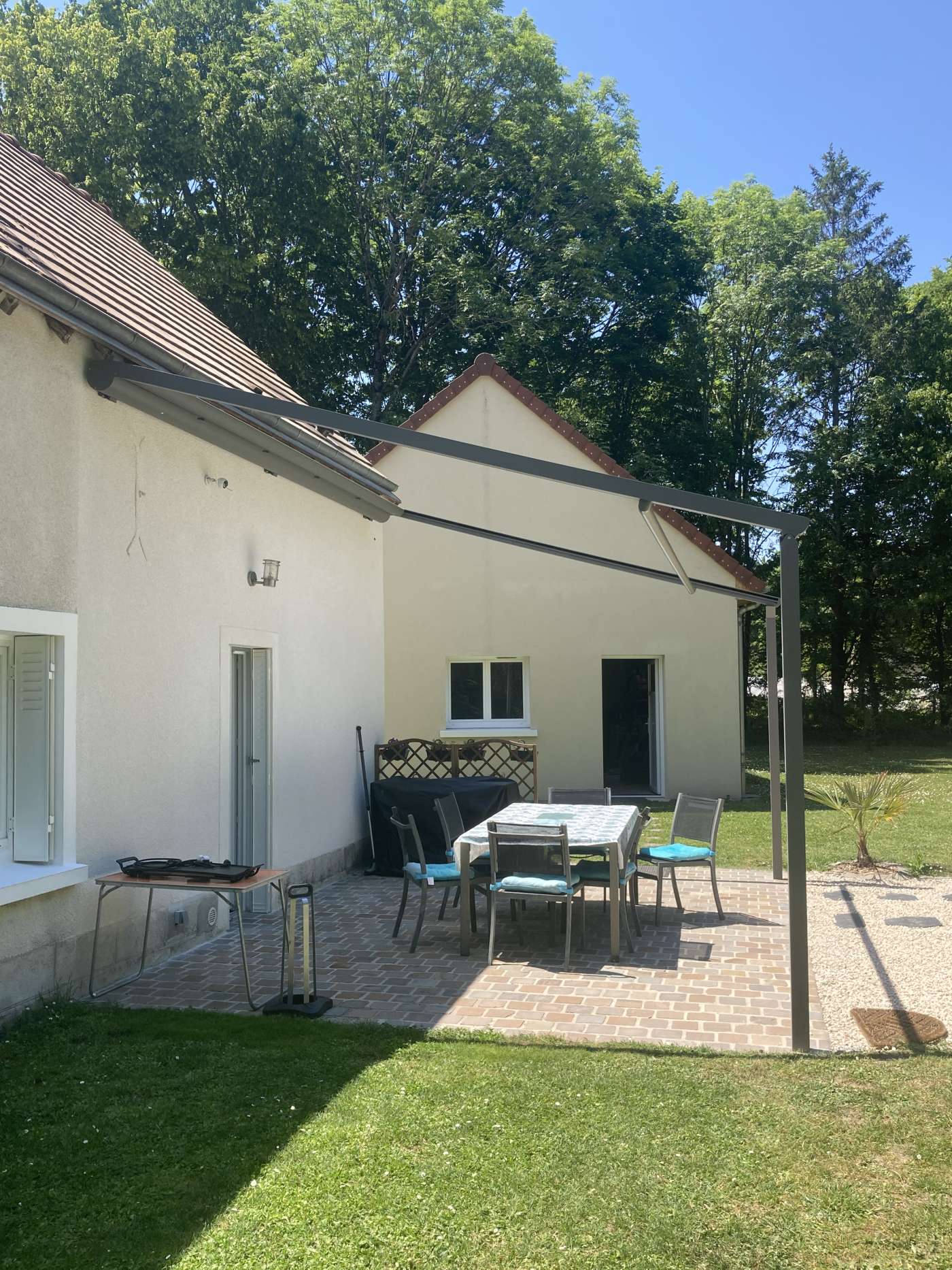 pergola store offrant légèreté, grande résistance au vent, et une ombre généreuse, posée à Selles sur Cher