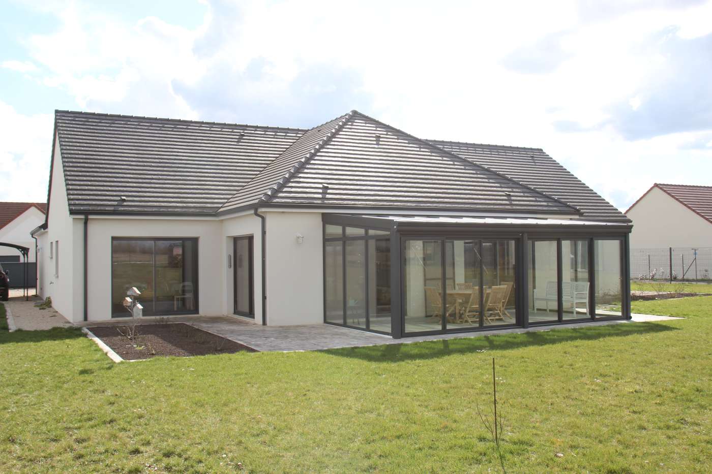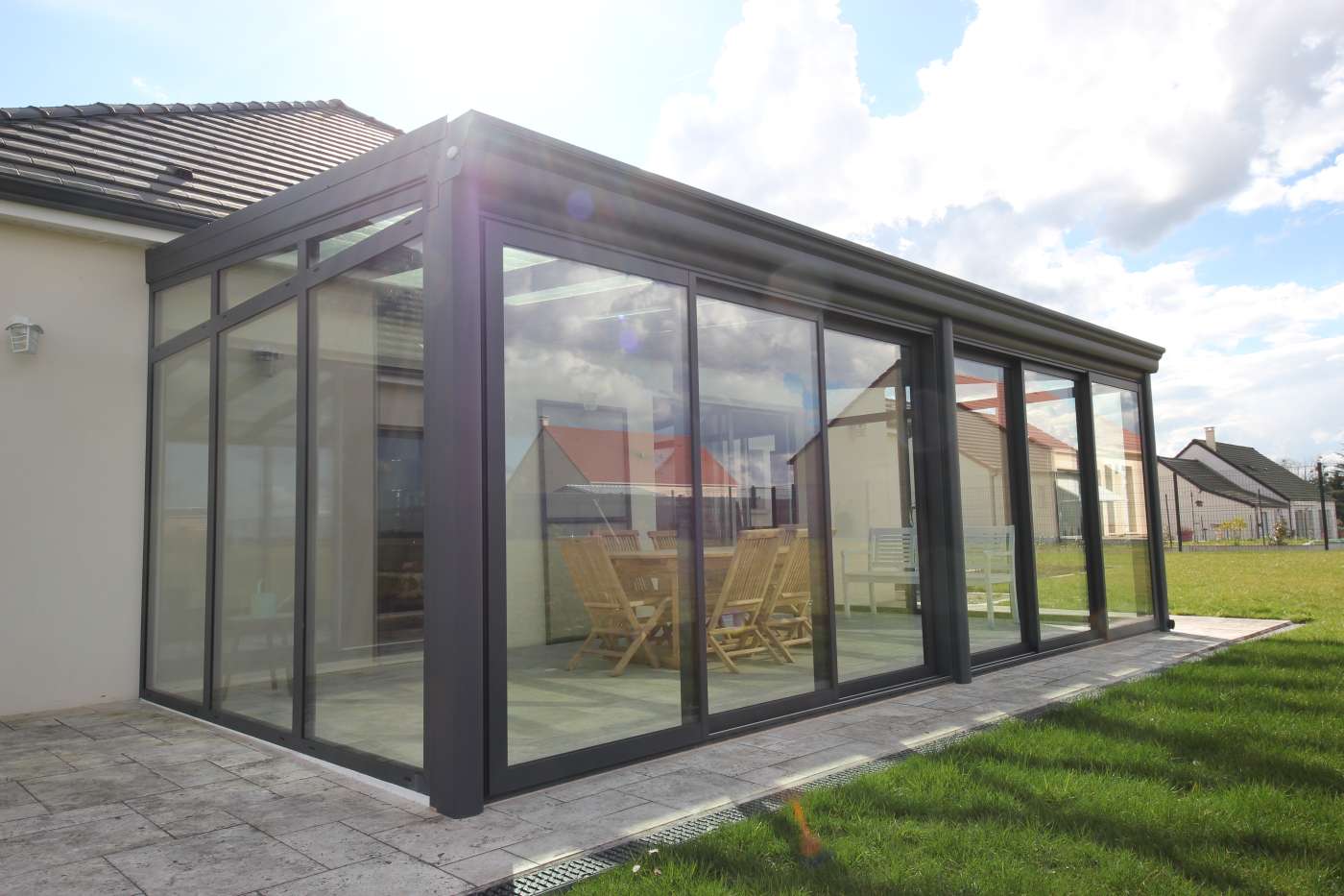 Pour cette belle véranda, nos clients souhaitaient profiter d'un maximum de lumière, et surtout de ne rien perdre en luminosité à l'intérieur de la maison.