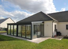 la véranda est par ailleurs entièrement conçue avec des profils aluminium à rupture de pont thermique, les menuiseries sont toutes équipées de vitrages isolant avec retardateur d'effraction.